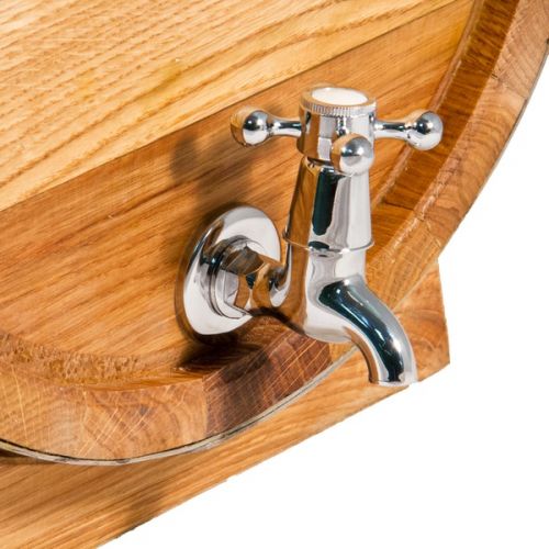 - В комплекте кран из латуни. Этот материал не вступает в реакцию со спиртным, не подвергается коррозии. Аккуратно сливайте жидкость без потерь!