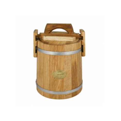 Ничто так хорошо не подойдет для хранения ягод и фруктов, а также меда и солений, как Кадка дубовая 10 л «Бонпос» (обручи из нерж. стали), представляющая собой полый цилиндр с диаметром основания 28 см и верха – 23,5 см. Высота равна 37 см, что при весе закрытой пустой тары в 4,6 кг позволяет транспортировать ее без видимых затруднений. Обхватывающие обручи из нержавеющей стали придают кадке дополнительную прочность и стойкость. В 1о-литровом объеме можно засаливать капусту, квасить огурцы и готовить большое количество различного маринада, которому подобное соседство только придаст приятный привкус.