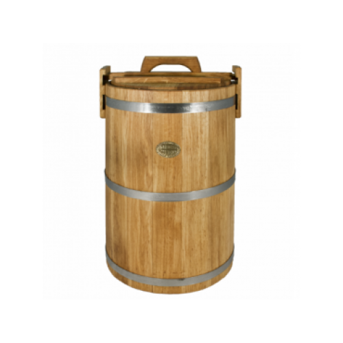 Для хранения большого количества ягод или грибов в загородном доме подойдет выполненная из экологически чистых и безопасных материалов кадка дубовая 100 л «Бонпос» (обручи из нерж. стали), оснащенная крепкими ручками и плотно прилегающей крышкой. В ней также можно засаливать овощи, мариновать рыбу и мясо, хранить домашние субпродукты, опустив кадку в погреб или подвал. 69-сантиметровая высота при 100-литровом объеме достаточна для хранения больших запасов солонины или лесных грибов. Собственный вес кадки при этом равняется 18 кг в закрытом состоянии.