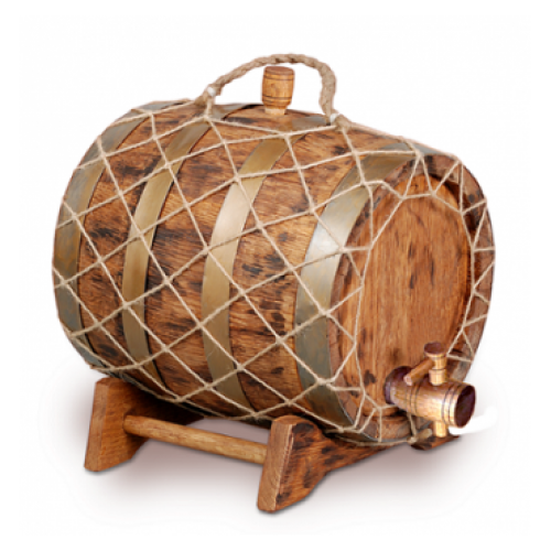 Параметры: большой диаметр – 25,6 см, малый – 24,2 см, длина – 28,6 см. Обручи сделаны из крашеной стали. Купить бочку под старину 10 л Премиум (российский дуб) вы можете на нашем сайте.