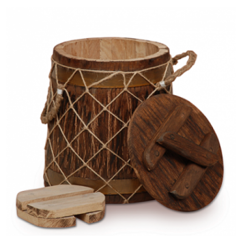При помощи подобного изделия вы можете приготовить дома ароматные соленья, которые впитают запах дуба. Ведь кадушки делают именно из этого дерева и только вручную, следуя всем традициям древних мастеров. Все знают о том, что дубовая древесина служит много лет, а также не подвергается воздействию влаги. Сама древесина имеет в составе большое количество веществ дубильного типа, что помогает сохранять соленья пригодными длительное время. При помощи сетки, входящей в комплект переноска становится более комфортной. Купить кубельчик под старину дубовый 6 л (российкий дуб) значит сделать оригинальный подарок близким, так как его оформление под старину украсит любой дом.
