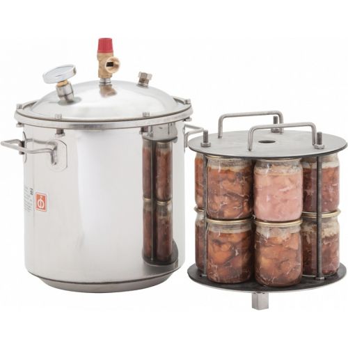 Идеальным решением для ускорения процесса заготовки домашней консервации станет автоклав "Малыш ГазНерж У" на 22 л. Для изготовления аппарата используется пищевая нержавейка, обеспечивающая устойчивость к ударам и прочим повреждениям. Он предназначен для приготовления вкусных и натуральных консервов из овощей, фруктов, мяса, птицы и рыбы. Используется на газовой плите, горелке или даже костре.