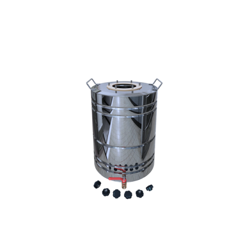 30-литровую емкость из нержавеющей стали можно использовать как перегонный куб, а в комплектации с фланцем и гидрозатвором – как бродильную камеру.
