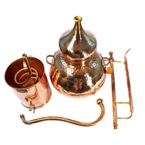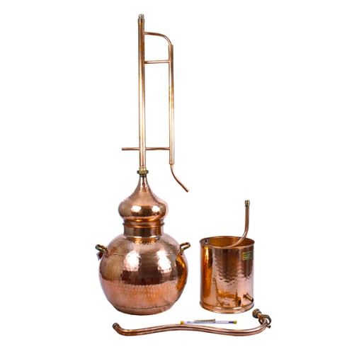 Аламбик с ректификационной колонной 30 л "Люкс" (комплект с дистиллятором) – новинка в производстве от ведущих португальских производителей. Изготовлен вручную из меди, и используется для дистилляции (перегонки) не только крепкого алкоголя, но и вина, эфирных масел во всем мире уже не одно тысячелетие.