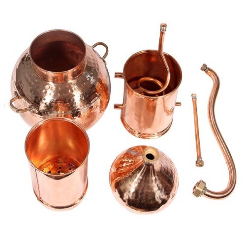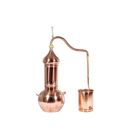 Аламбик с колонной 5 л – портативное устройство, для дистилляции небольших объемов благородных напитков, таких как коньяк или виски, цветочной воды и даже эфирного масла. Отличительной особенностью этого аппарата, кроме небольшого объема, является съемная колонна и наличие сита.