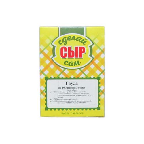 Набор заквасок используется для домашнего изготовления голландского сыра сорта Гауда. Конечный продукт получается полностью натуральным, полезными, имеет плотную структуру и отличается приятным привкусом. В комплект входит сама закваска, пепсин и кальций хлористого типа. Одной упаковки достаточно для 10 литров молока, которые обеспечивают получение до 1,2 кг готового продукта.