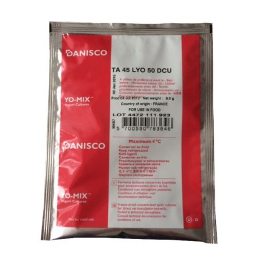 ТА 45 – закваска термофильного типа, которая предназначена для домашнего изготовления сыров, которые производятся при высоком температурном режиме. Данный состав обеспечивает получение натурального полезного продукта, себестоимость которого гораздо ниже магазинных аналогов. С его помощью готовят йогурты, Маасдам, Моцареллу, Пармезан, Эмменталь и прочие элитные сыры. Закваска на 100% состоит из Streptococcus Thermophilus.