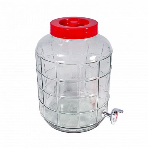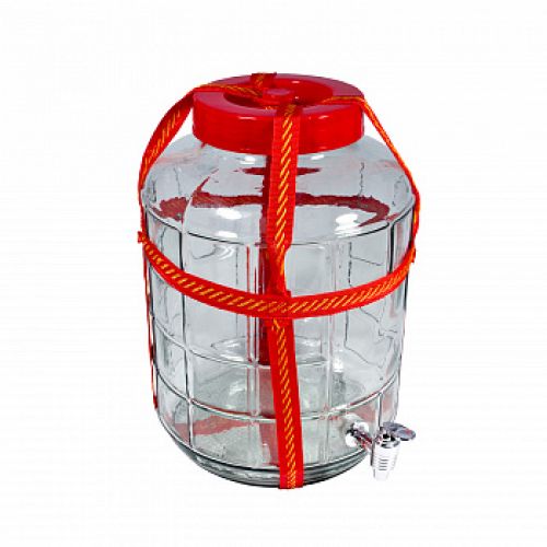 25-ти литровая емкость из стекла с краном и гидрозатвором подойдет для длительного хранения и транспортировки сыпучих продуктов и различных жидкостей. Стеклянные банки используют также для засолки и консервирования овощей, фруктов, рабы и др. Прекрасно справятся стеклянные емкости и с изготовлением вина, пива, кваса и других напитков.