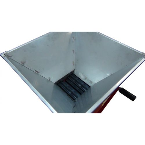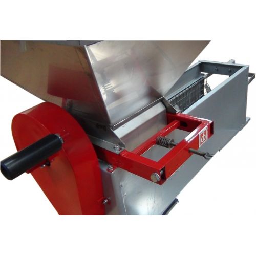 Способ работы: спускаясь по стенкам бункера, грозди перемещаются на дробильные ролики для размельчения, а затем к гребнеотделяющему валу для отделения веточек от ягод. Далее, через отверстия корзины масса проходит в заранее расположенный под оборудованием контейнер.