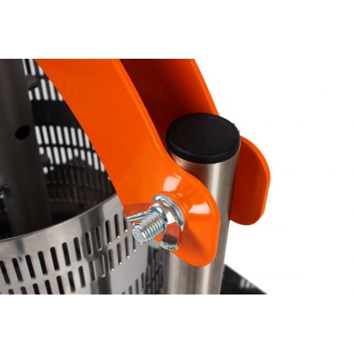 Простой принцип работы. Поместите внутрь фильтрующий мешок с мезгой, после чего закрепите ручку с дополнительным рычагом. Аппарат очень легко вращать вручную, ведь с помощью домкратной системы вы сможете создать давление до 5 тонн!